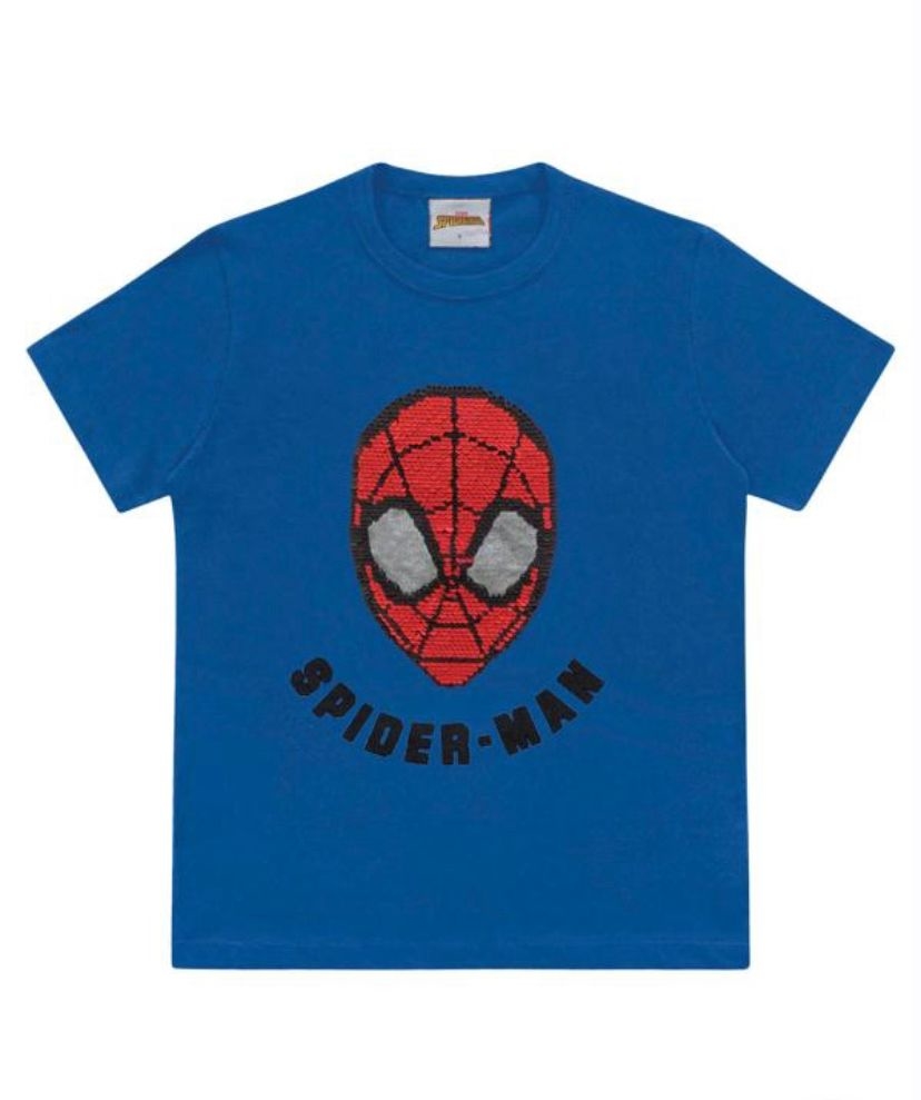 Modelo confeccionado em meia malha na cor azul, 100% algodão, manga curta, estampa localizada na parte frontal da mascara do homem aranha, decote redondo, modelagem ampla, bordado com lantejoula reversível. Um dos herís queridinho dos nossos pequenos, vai deixar o seu filho estar sempre na moda e estiloso em qualquer ocasião.