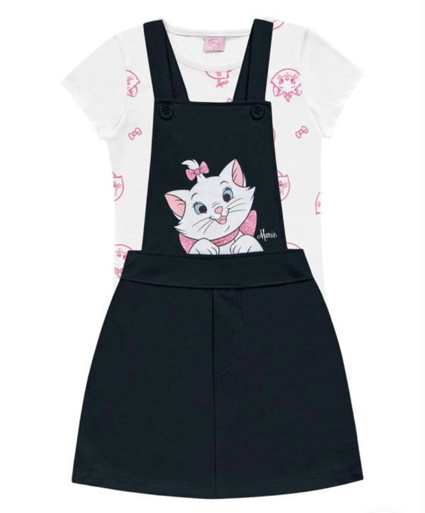 Nesta categoria você irá encontrar um lindo conjunto de Blusa e salopete da gatinha mais linda da Disney, a Marie. Este conjunto é perfeito para aquelas mamães que gostam de uma peça diferente e divertida para sair em família. Confeccionados em meia malha e stretch denim, a blusa branca conta com estampa rotativa da gatinha marie e laços em rosa e salopete com estampa localizada na parte superior frontal com silk em glitter, botões na alça que permitem ajuste no tamanho e elastico na cintura na parte das costas para melhor adequação ao corpo da criança. (Composição: blusa em 100% algodão, salopete em 66% algodão, 32% poliéster e 2% elastano).
