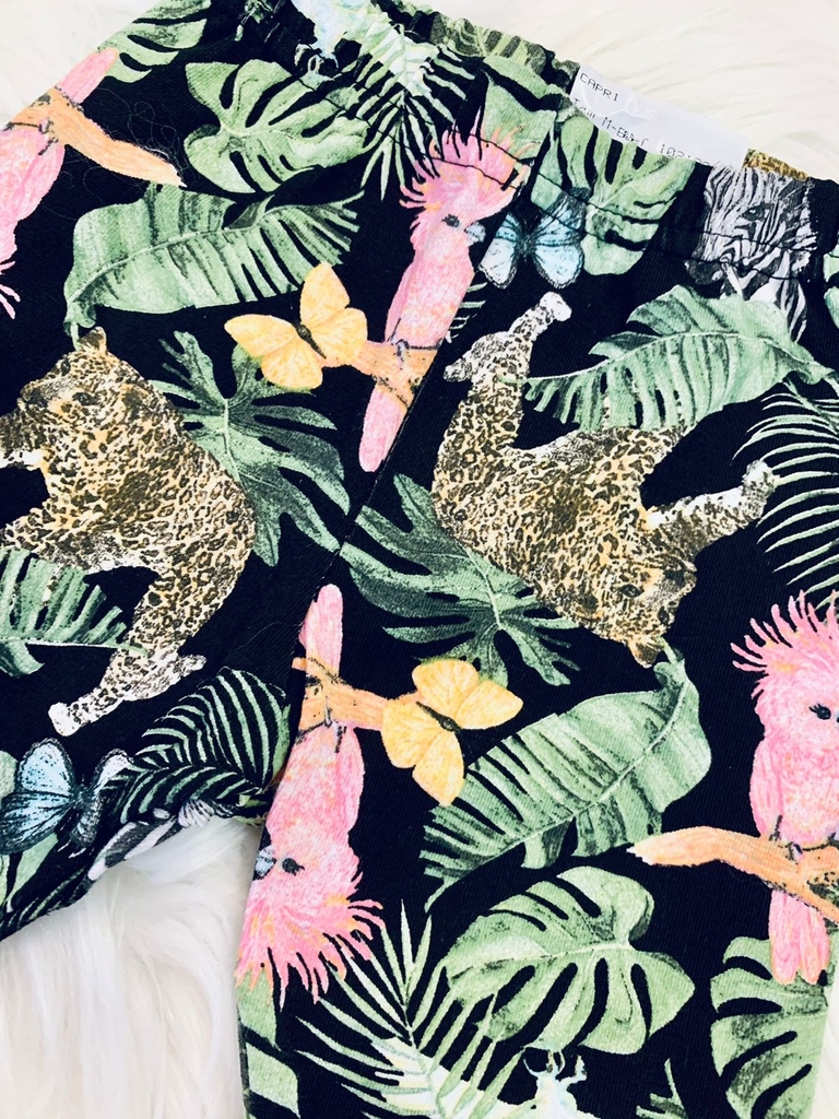 Este lindo conjunto da marca Fakini é composto por uma blusa branca, manga curta, gola redonda, com estampa frontal onça, escrita CUTE com apliques de strass e amarra na cintura e uma calça legging floral, com estampa de selva, super estiloso e confortável (Composição: Blusa: 100% algodão; Calça: 92% algodão e 8% elastano).