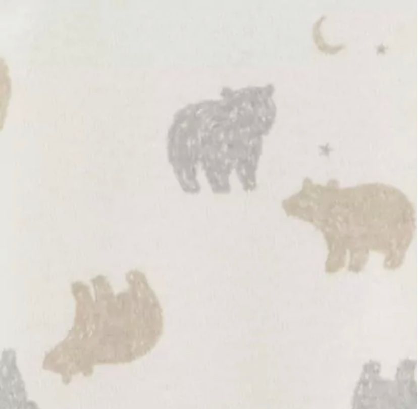Aqui você encontra um kit de macacão carter´s com pé sendo 01 macacão azul acinzentado com estampa de estrelas e 01 macacão bege com estampa rotativa de urso. Ambos os macacãos com abertura frontal em ziper com abertura em ambos os lados e, nos NB tem vira luva.