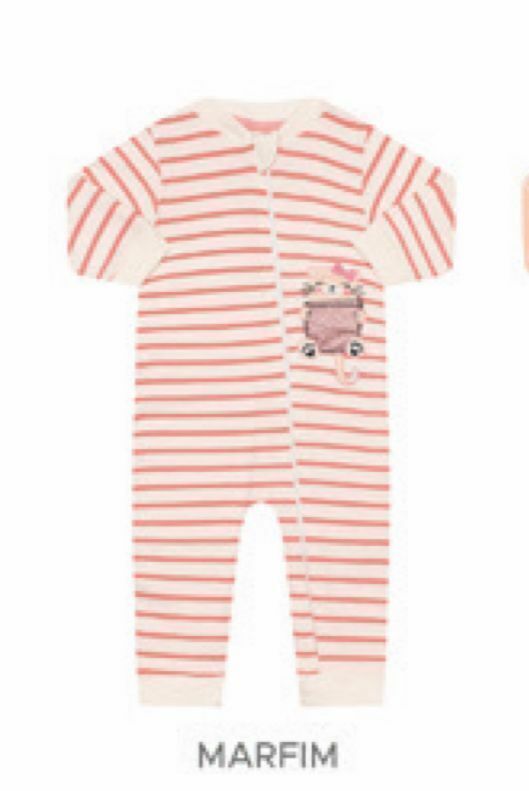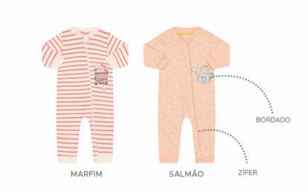 Macacão em tecido diferenciado de algodão da marca TileeSul Baby, tecido trabalhado, com ziper frontal da gola ao pé, e proteção na parte superior, sem pé, com punhos nas pernas, mangas e gola, gola redonda, manga longa, e bordado frontal na laterail (bordado com proteção interna que não permite contato direto com o bebê).