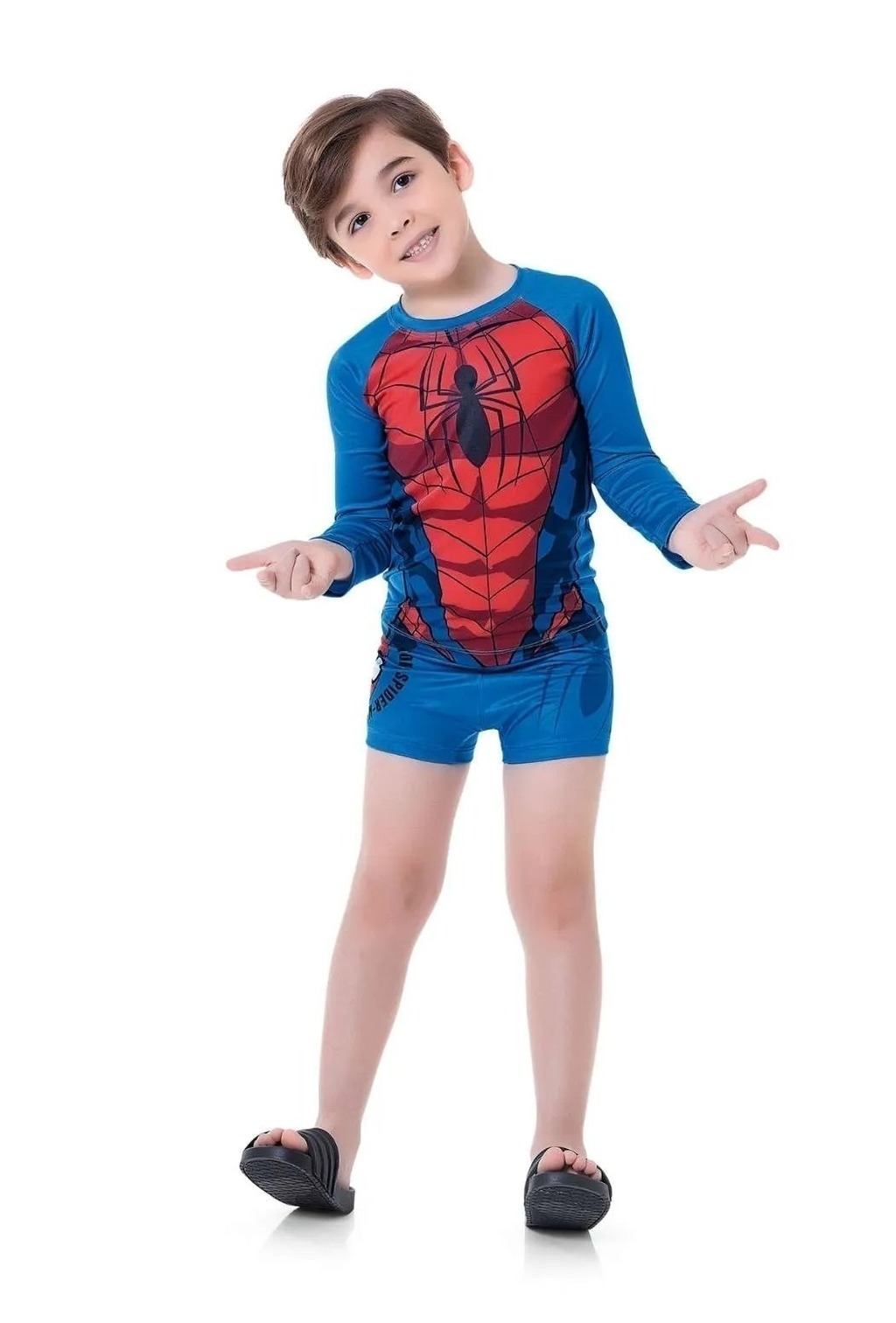 Camiseta manga longa confeccionada em tecido tratado com a tecnologia Sun Off UV, que confere fator de proteção UV (FPU) 50+ às peças, deixando o seu pequeno protegido dos raios solares e pronto para curtir um dia superdivertido na praia ou piscina. Camiseta com manga longa, decote redondo, cor azul royal, com estampa frontal que imita a roupa do homem aranha para que o seu pequeno possa se imaginar o própior heroi, modelagem soltinha. O modelo é confeccionado em cotton poliéster 96% poliéster 4% elastano.