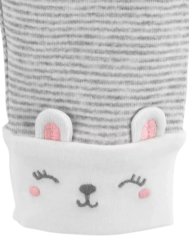 Este conjunto de 3 peças Carter´s contendo 02 body e uma calça sendo: 01 body manga curta branca com estampa de coelho na frente, 01 body manga longa azul floral e 01 calça cinza listrada com detalhe de coelho com orelhas no punho.