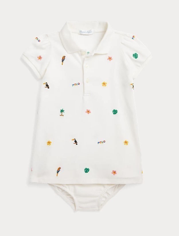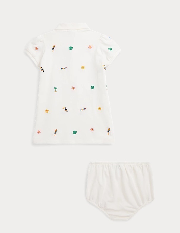 Neste lindo vestido de uma das marcas mais conceituadas do mundo, trazemos vestido em malha de algodão é bordado com motivos coloridos de flores, tucanos e palmeiras e acompanha tapa fralda.